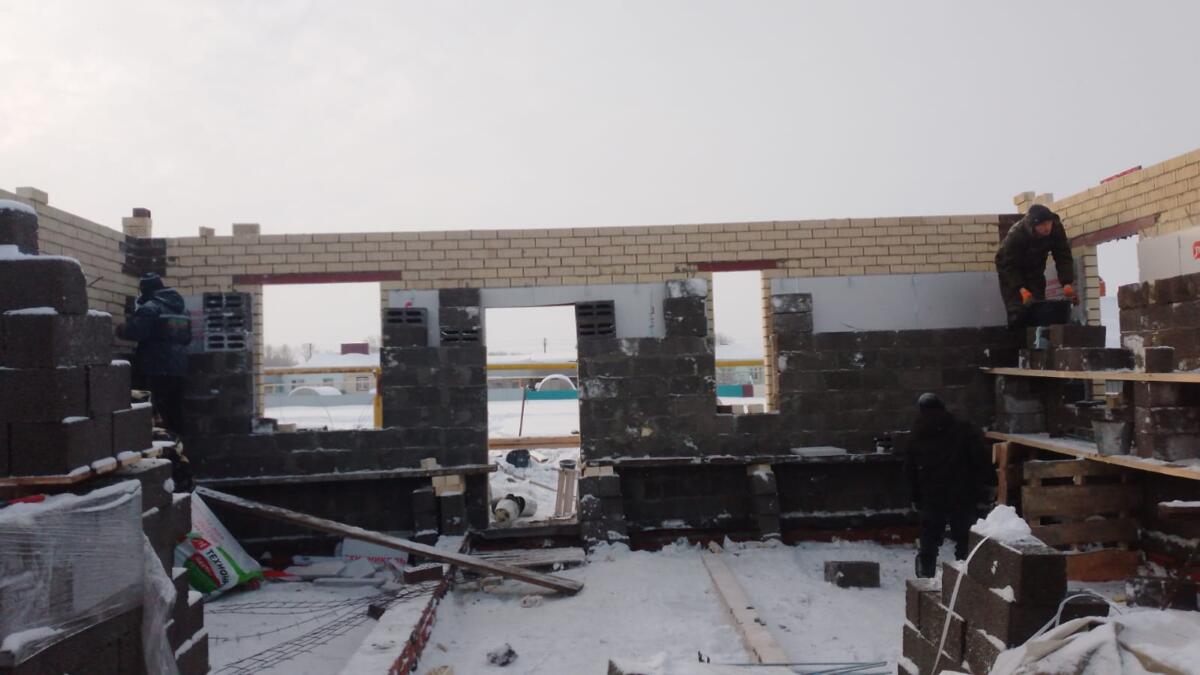 Хәтерләсәгез, Фәнисә бу гаиләнең инде икенче кат януын хәбәр иткән иде. Беренче тапкыр янган пуҗымда йорт өчен салынган фундаментлары да бар дигән иде. Авыл халкы күпбалалы гаиләне урамда калдырмады. Алар Вәлиәхмәтовларга йорт сала башлады. Инде диварларын өеп тә куйганнар.
