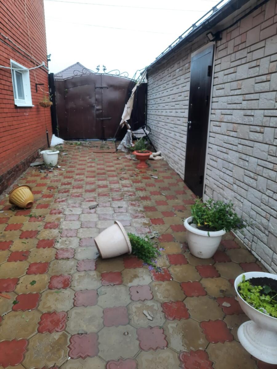 – Көчле җил капка төбендә чүлмәктә утыручы гөлләремне очыртып атты. 12 метрлы теплицам да урыннан кузгалды, ул да җимерелде. Веранда тәрәзәләрем коелды. Яшелчәләремнән башка уңыш алырлык түгел инде. Кыяр-помидорлар сынып бетте, кишер, суганнар да юк, - ди ул. – Давыл башлангач эре-эре боз яуды. Шул түбәмдәге профнастилны тишкәләп бетергән. Калаем иләккә әйләнгән. Ничекләр тәртипләп бетерәсе.