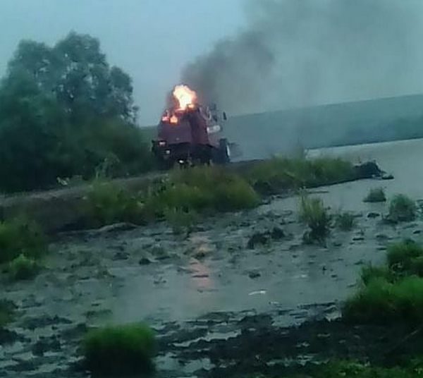 Плотина тирәсен узганда бик каты яшен яшьнәде, шул минутта бер комбайн - "Полесье" барган җирдән яна башлаган. Яна башлауга, янгын сүндерү машинасы янда булганлыктан, ул сүндерелгән.