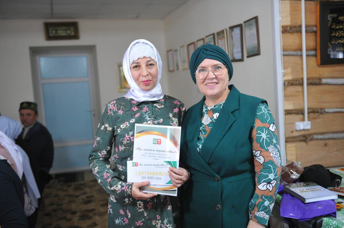 Жиңүчегә бүләк тапшыру тантанасы, без күзаллаганча, башкачарак үтәргә тиеш иде. Эшмәкәрләрнең фани дөньядан китүе сәбәпче булды моңа. Заман чире аларны авылдашлары, якыннарыннан аерды. Авыл халкы, аларның рухына багышлап, Коръән ашы үткәрде. «ВТ» журналистлары бүләкне иясенә мәчеттә тапшырды.