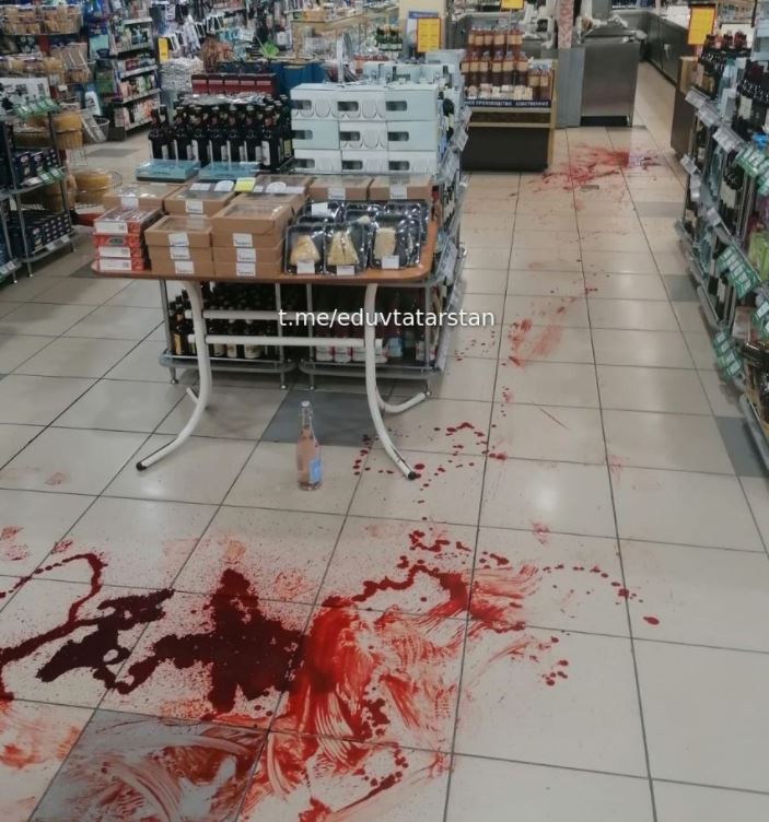 "Бәхетле" кибетләренең берсендә ясалган коточкыч кадрлар социаль челтәрләрдә таралды. Фотода курыккан кибет хезмәткәрләре һәм сатып алучыларны, котырынган ир һәм канга баткан идәнне күрергә була.