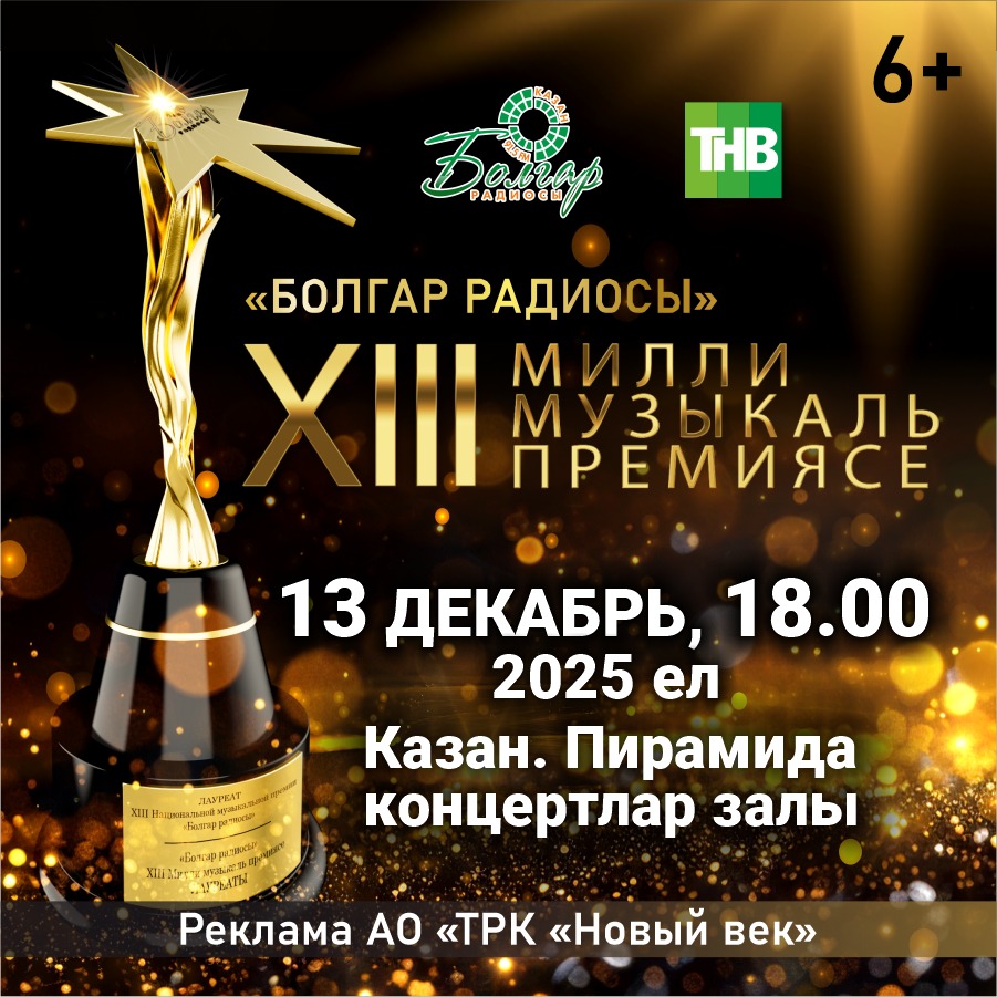 «Болгар радиосы» XIII Милли музыкаль премиясен тапшыру тантанасы 13 декабрьдә 18:00 сәгатьтә «Пирамида»да узачак. 6+