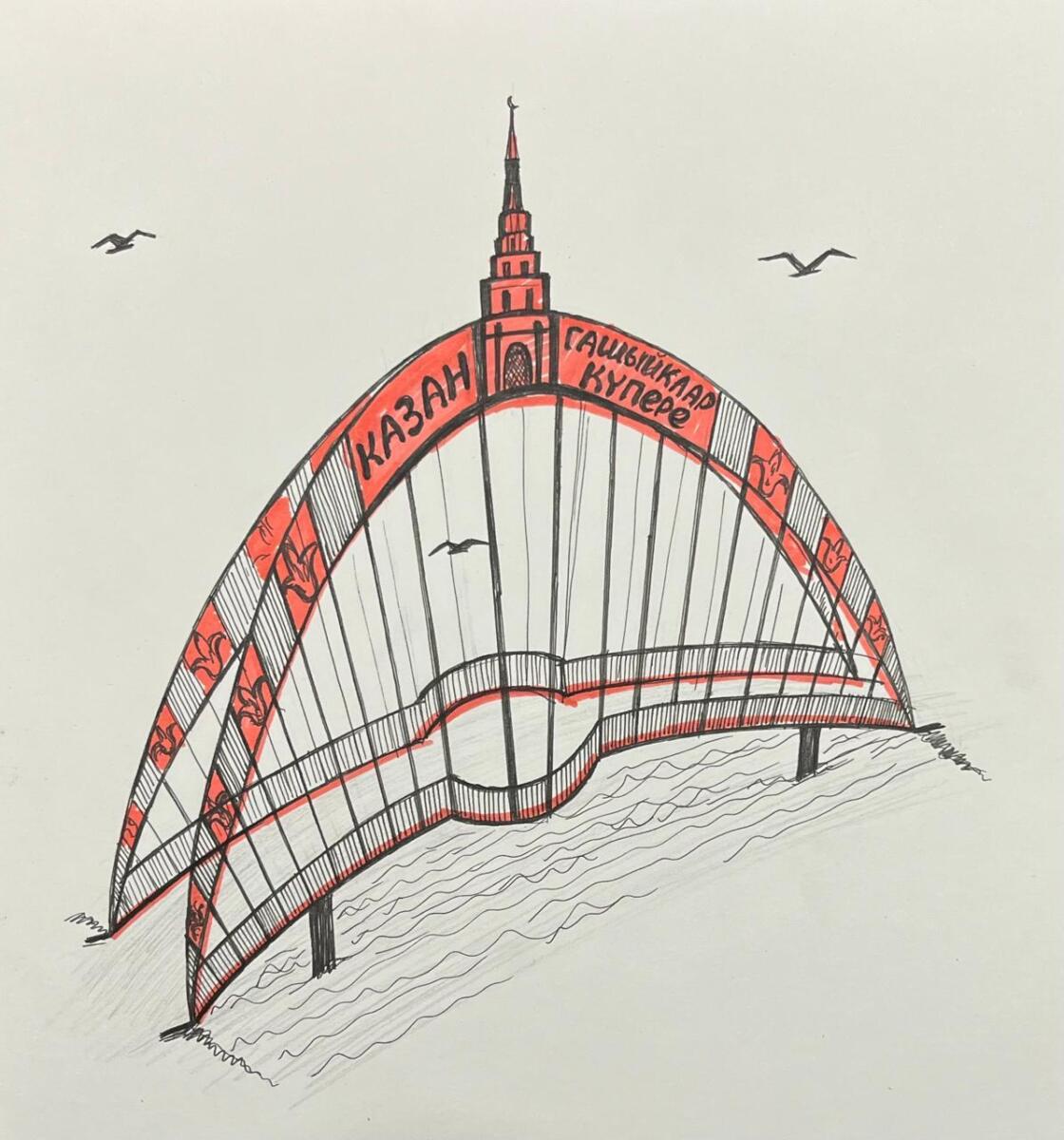 Без тәкъдим иткән проектта (эскизлар авторы – Зөлфия Мөхәммәтҗанова) күпер Сөембикә манарасы сурәте белән бизәлгән. Казанга керү юлында бу символның булуы зур әһәмияткә ия. Сөембикә Ханбикә улы Үтәмеш хан белән 1551 елның 11 августында нәкъ менә Бишбалтаның Бакалда йокымыннан Яңа Әмир (Свияжск) авылына йөзеп китә. Соңгы мәртәбә Казан белән шушы тирәдә саубуллаша.