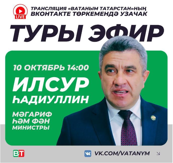 Иртәгә «ВТ» Мәгариф министры Илсур Һадиуллин белән туры эфир уздыра