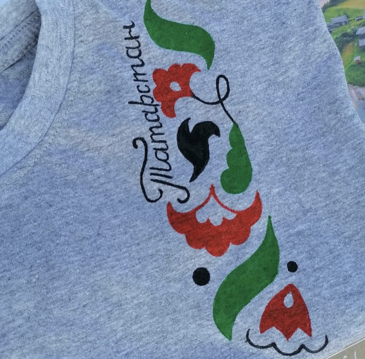 – Үземне төрле юнәлешләрдә сынап карадым. Үсмер чактан ук балалар фотографы, туй декораторы, флорист булып эшләдем. Ике ел элек график дизайн курсларын уздым һәм шуның белән ныклап шөгыльләнә башладым. Кыскасы, үземне шушы юнәлештә таптым дип уйлыйм. Шулай итеп, логотип, орнаментлар уйлап чыгарып, тәбрикләмә һәм хәзер бик популяр булган стикер-паклар (инглиз теленнән ябыштыргычлар җыелмасы дигәнне аңлата. –Авт.) ясау белән мавыгып киттем. Узган елны милли бизәкле кием дә ясый башладым. Беренче футболканы «Яшьлегем чишмәләре» дигән язу белән бизәдем. Ә инде ике ел элек «Печән базары»нда дизайнер Лилия Гәрәева белән танышкач, миндә милли стильдә кием-салым ясау теләге туды.