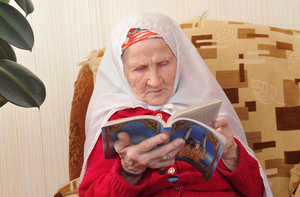 Болын кадәр өендә уллары белән сөйләшеп йөргән чаклары да була Фатыйма әбинең. Юк, саташып түгел. Хәтере яхшы әле аның. Аларның балачагын, бишек җырларын, яшь чакларын искә төшерә. Җиде балада –җиде холык. Яңартырга хатирәләре дә күп. Төшләренә кереп йөдәтмиләр. Дога укыгач, рухлары тынычтыр. Йокларга төнге сәгать 11-12дә генә ята. Эче пошса, саф һава сулап керә. Телевизордан яңалыкларны белеп тора, газеталар укый. Оекбашлар да бәйли. Тик анысына сарык йоны кирәк, ди. Күзлек киюне белми.