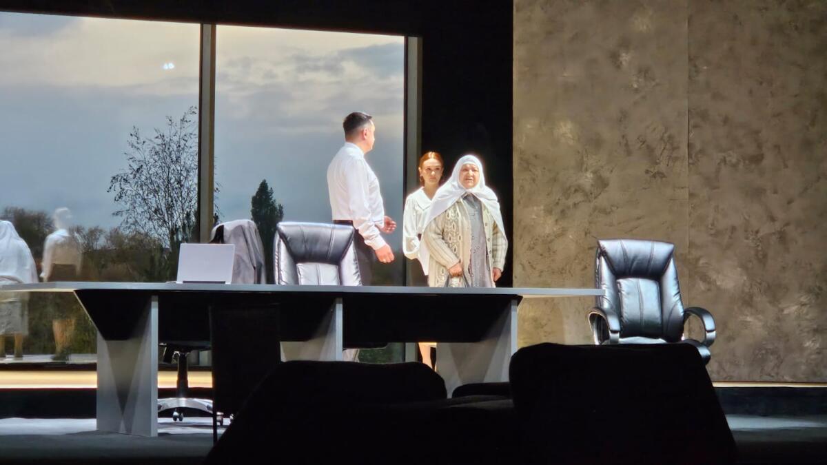 Пьеса ике пәрдәдән тора. Премьера бер бүлеккә калдырылган, тәнәфессез бара. «Текстны кыскарттык, 90 нчы елларга хас кайбер нәрсәләрне алып аттык», - ди Илгиз Зәйниев.