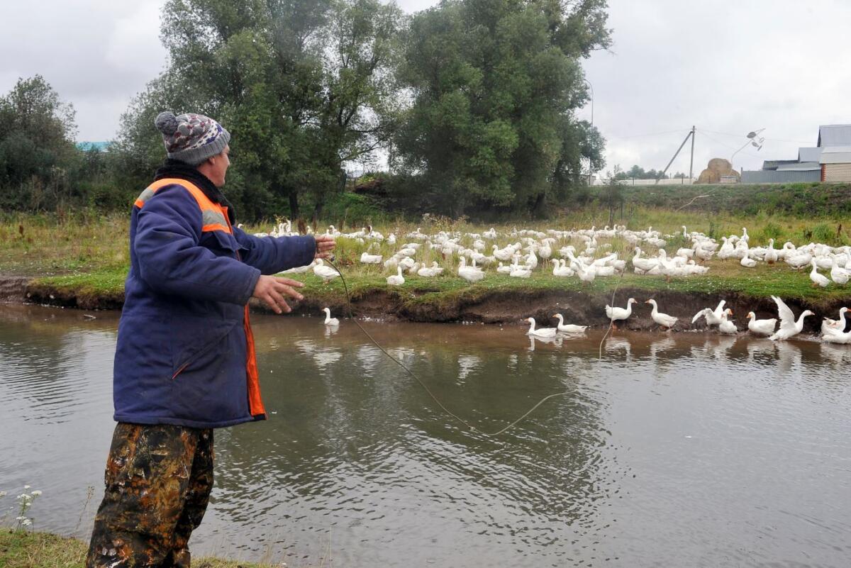 Искәндәр иртәнге сәгать 8дә – су буенда. Ул 350 баш каз өчен җаваплы. Кичке 5кә кадәр көне шулар белән мәш килеп уза. Яңгырына да, эссесенә дә күнеккән. Без килгәндә дә яңгыр сибәләп тора иде. Искәндәрнең моңа исе дә китмәде. «Казларны өйдә ябып тотып булмый. Анда үсми бит алар. Су буенда йөртергә, чирәм ашатырга кирәк. Өйгә кайткач, мичкә ягып, бәрәңге пешерәм. Шул чакта ите дә тәмле була», – ди Искәндәр.
