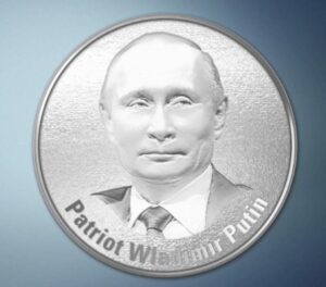 Германиянең Compact сәяси журналы Владимир Путин хөрмәтенә көмеш акча чыгарган. Сувенир көмештән эшләнеп, Владимир Путин портреты белән бизәлгән. Анда «патриот Владимир Путин» (Patriot Wladimir Putin) дигән сүзләр урын алган, дип яза «ТАСС».