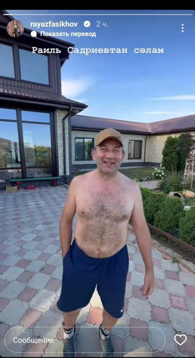Раил Садриевның да кәефләре яхшы күренә. Ул видео аша барлык дусларына сәлам әйтеп, кул болгый.