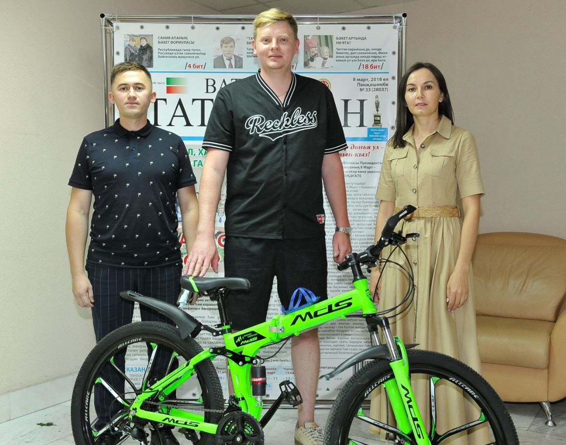 Язылучыларыбыз арасында уйнатылган велосипедны Арча районыннан Роза Вәлиева отты. Бүләкне алырга укучыбызның улы Шамил килде. «Моңа кадәр мондый бүләкләр откан юк иде. Җиңүебезне белгәч бик сөендек. Яңа велосипед алырга уйлап кына йөри идем. Хәзер рәхәтләнеп җилдерәчәкмен инде», – ди Шамил.