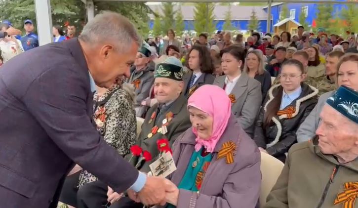Хәбәрдә әйтелгәнчә, Рөстәм Миңнеханов тантаналы чара башланыр алдыннан акциягә мактаулы кунаклар буларак чакырылган ветераннарның һәркайсы белән кул биреп исәнләште.