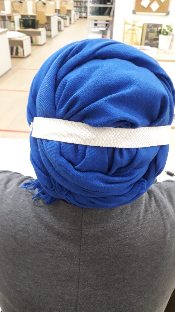 Түбән Камадан коллегабыз үзе кулланган ысулны тәкъдим итә. Үзе уйлап тапмаган, кешедә күргән. Бик уңайлы икән. Рәсемнән карап, һәркем үзе тегеп куя ала. Урамда йөргәндә муенга төшереп куярга мөмкин.