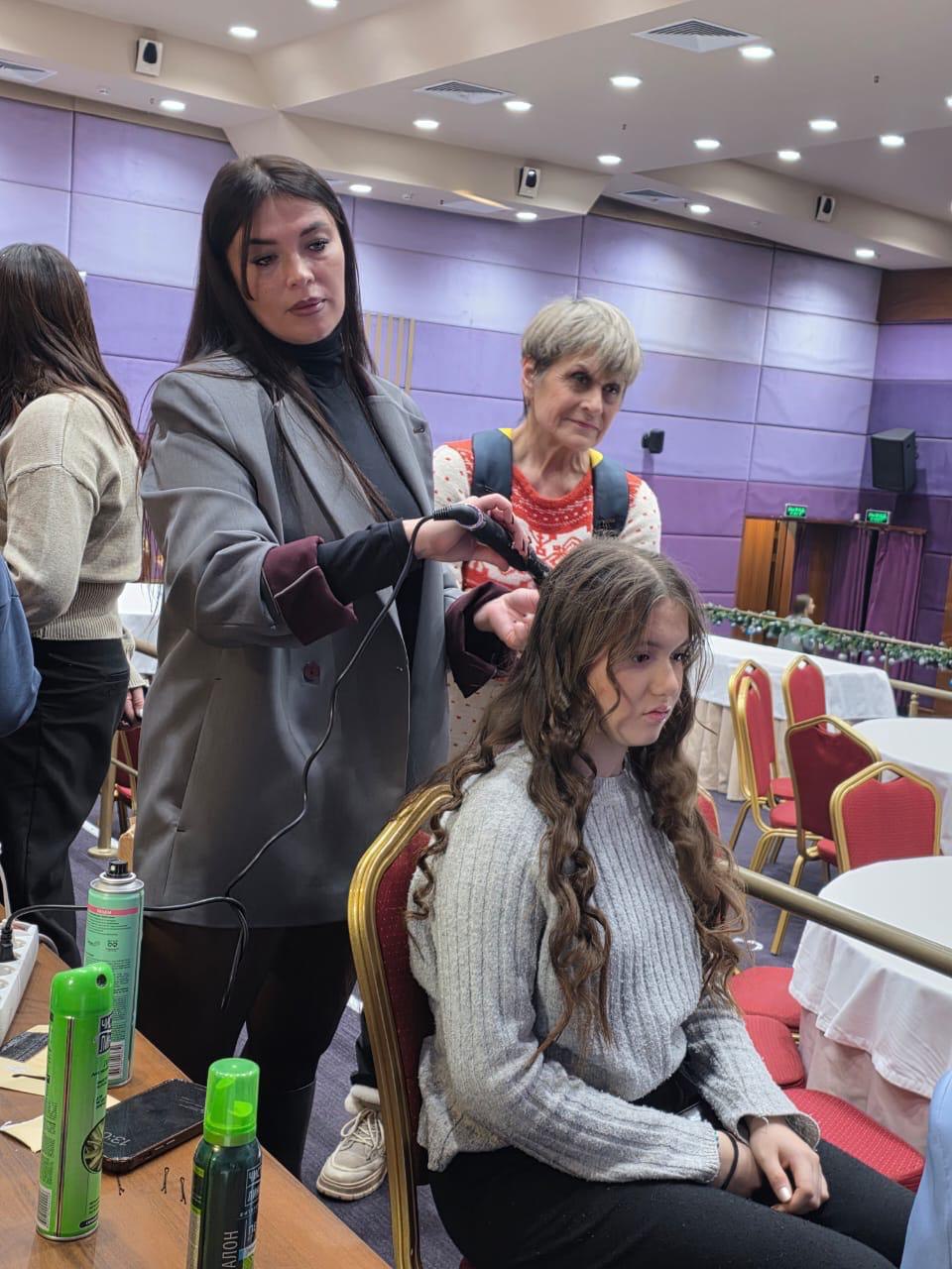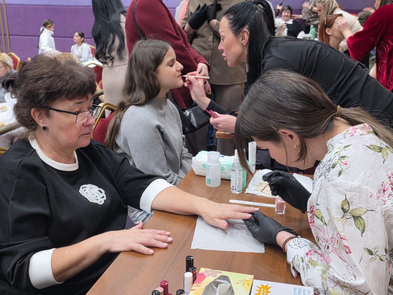 Балалар аниматорлар белән шау-гөр килеп уйнаса, «Үзгәреш» зонасында ирекле мастерлар һөнәр осталары әниләрнең, тол ханымнарның, герой кызларының чәчләрен ясадылар, бизәндерделәр, кашларын буядылар, тырнакларын матурладылар, массаж ясадылар.