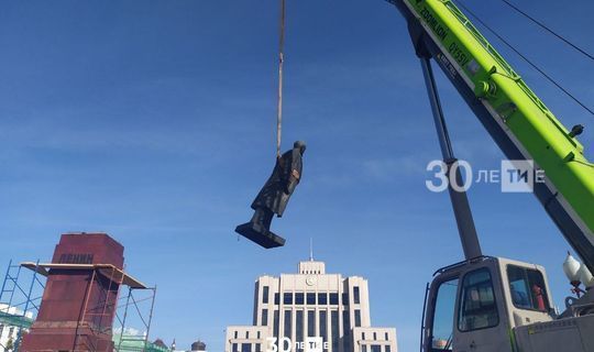 Казанның Ирек мәйданында Ленин һәйкәлен постаменттан алдылар