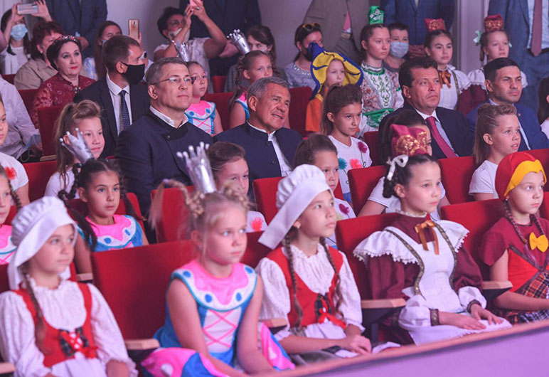 Җитәкчеләр тарихи Алафузов театры бинасында «Созвездие – Йолдызлык» сәнгать йортын ачу тантанасында да икәү катнашты.