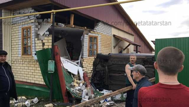 Шаһитлар социаль челтәргә кичә Татарстанда, Базарлы Матак авылында булган инцидентның фотосурәтләрен куйды. Һәлакәт шаһитлары сүзләренә караганда, автомобиль, диварны җимереп, өйгә очып кергән.