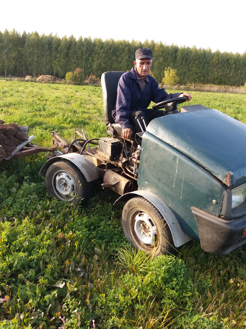 – “Ока”ның двигателе яхшы иде. Ташларга кызгандым. Алып калдым да, трактор ясарга булдым. Мин уйлаганнан да яхшырак килеп чыкты. Бу тракторны хуҗалык эшләрендә кулланырмын дидем. Аннары шуңа җайлаштырып, арба да ясадым, бәрәңге казу җайланмасы да әзер булды. Менә быел шул тракторга көрәк тә ясадым. Хәзер карны шуның белән генә эттерәм”, – ди ул.