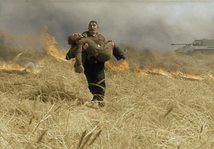 Картинада ул, танкист улының яралануын ишетеп, госпитальгә чыгып киткән әти образында гәүдәләндерелгән. Әти кеше барып җиткәнче, улы, савыгып, яңадан фронт юлы буйлап китә. Карт, ничек итсә итеп, хәрәкәттәге армиягә кушыла, улы артыннан Берлинга таба атлый. Улы белән очраша ул. Ике катлы йортны штурмлаганда, яраланган бала әтисе кулында җан бирә. Җанны тетрәтә торган эпизод бит инде, әйеме? Грузин картының пуля һәм снаряд яңгыры астында янган иген кырын сүндерергә дип ташлануы да аннан ким түгел. Яисә вингорад куагын саклап, совет танкы алдына күкрәген киереп басуы да… Чын патриотизм менә шул инде ул: герман җирендәге йөзем тәлгәшен үлемнән саклап калып, яшь солдатларда нечкә күңеллелек, кешелеклелек хисләре уяту. Виноград куагын сабый баланы иркәләгән кебек иркәләп, җылы итеп сөйләшүче грузин картын сурәтләгән эпизодны караганда, күзләрегезгә яшь киләме сезнең? Табигатькә, кешелеккә, яшәүгә омтылышка капма-каршы булган сугышка нәфрәт хисәләре уянамы? Елыйсыз һәм нәфрәтләнәсез икән, димәк, сез – үз илегезнең чын патриоты инде. Яисә Әмирхан Еникинең «Кем җырлады?» хикәясен укыганда, йөрәгегез елыймы?